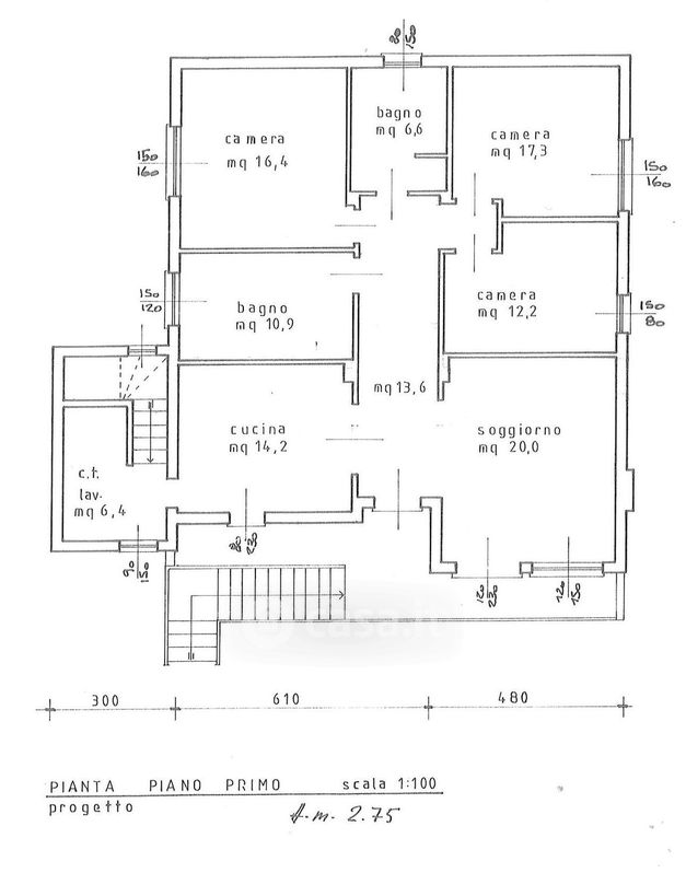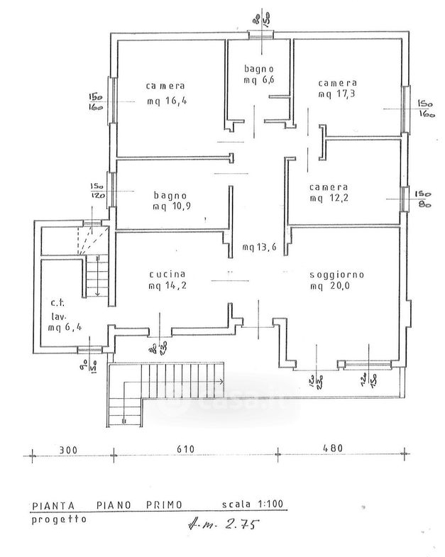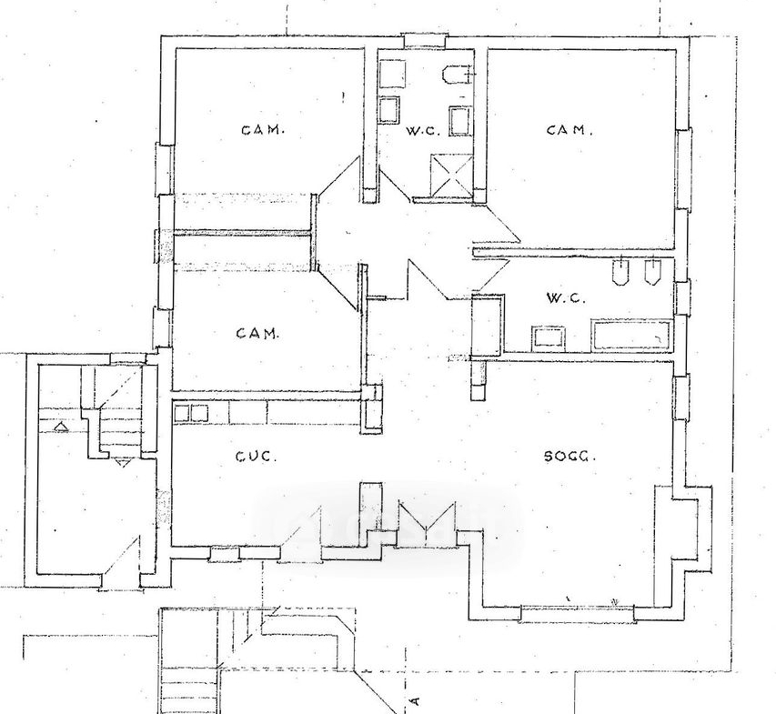 Piano primo: appartamento di mq. 115, ristrutturato nel 2001, composto da ingresso, soggiorno con caminetto, cucina, c. t/ lavanderia, 2 bagni, di cui uno con vasca jacuzzi, 3 camere.